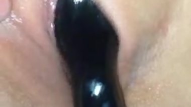 Voluptuous Hevanly fucks her little tiny pussy with her favorite orgasm-giving toy