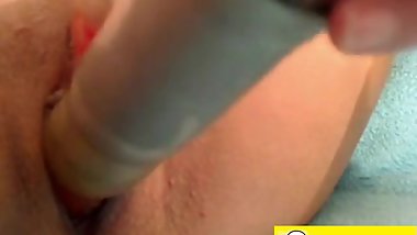 Hot kitten cant resist to her big dildo and starts fucking her pussy with it