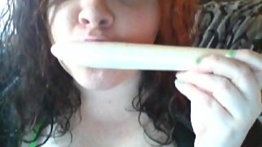 Teen babe Bristol is lubing up her huge dildo on her bed