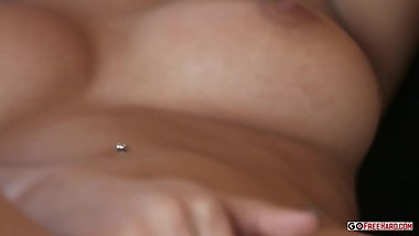 Foxy brunette chick with small tits moans in an orgasmic POV toying